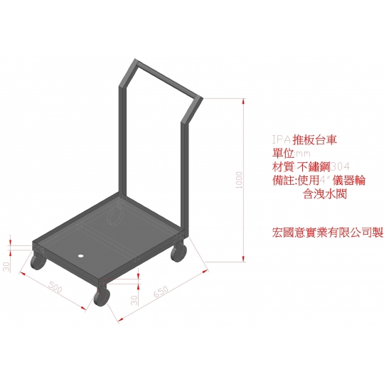 手推車的把手與檯面皆可依求訂製